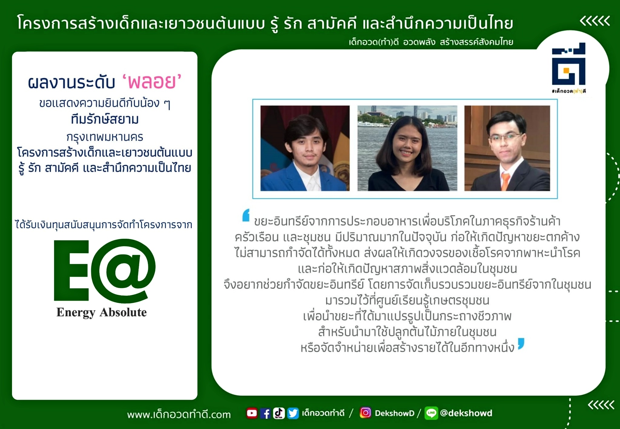 โมเดล การจัดการขยะอาหาร วิสาหกิจชุมชนท่องเที่ยวเชิงเกษตรตลาดน้ำคลองลัดมะยม กรุงเทพมหานคร